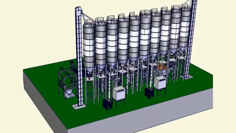 ويستخدم كل خط معالجة لاصق البلاط عادةً من 3 إلى 6 صوامع للمواد الخام حسب التركيبة المحددة. ولضمان الجودة، يوصى بالحد من عدد اختلافات المنتجات في كل خط إلى ثلاثة كحد أقصى وضمان تخصيص خطوط الإنتاج للتركيبات المتوافقة لمنع التلوث التبادلي.