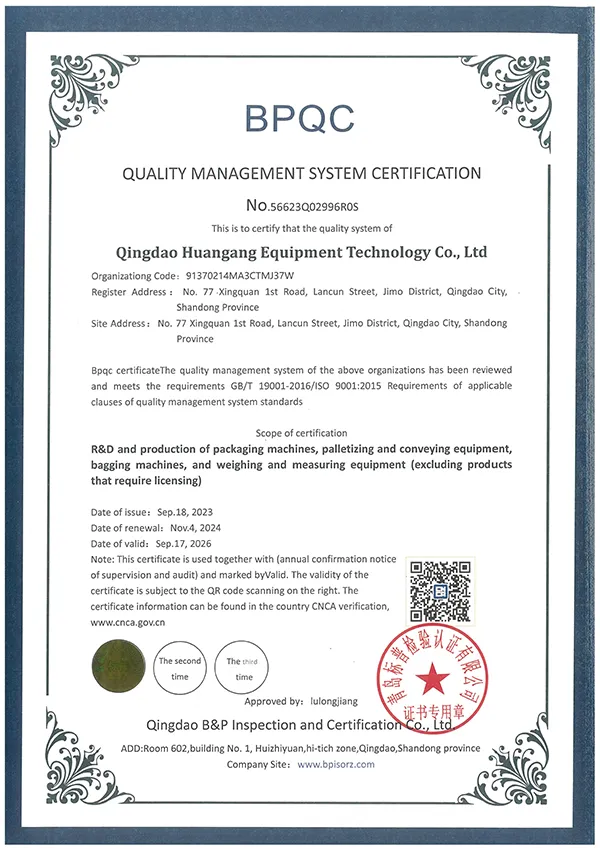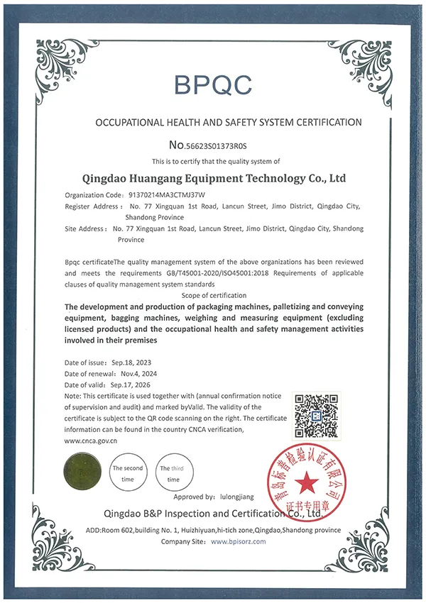 تأسست شركة Qingdao Huangang Equipment Technology Co., Ltd. في العام 2016 كشركة متخصصة في تصميم وتصنيع خطوط إنتاج الملاط الجاف، ومعدات الملاط المتخصصة، وأنظمة المعالجة والنقل والمناولة والتعبئة والتغليف لمساحيق المونة الجاهزة للترميم ومعجون الجدران والجبس والجص ولاصق البلاط والبورسلان وملاط التسوية الذاتية للأرضيات والاسمنت الأبيض والأسود وغيرها، كما تزود خطوط الإنتاج بأنظمة التعبئة والتغليف والنقل والتحميل على منصات نقالة روبوتية عالية التطور. فضلاً عن ذلك، فإن الشركة حاصلة على شهادات الجودة العالمية ISO9001 وISO14001 وISO45001، مما يضمن الامتثال لمعايير الجودة العالمية والبيئة والسلامة المهنية.